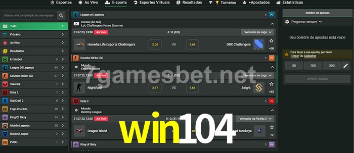 A aposta win104 oferece aos jogadores a experiência mais conveniente de apostas em eSports!